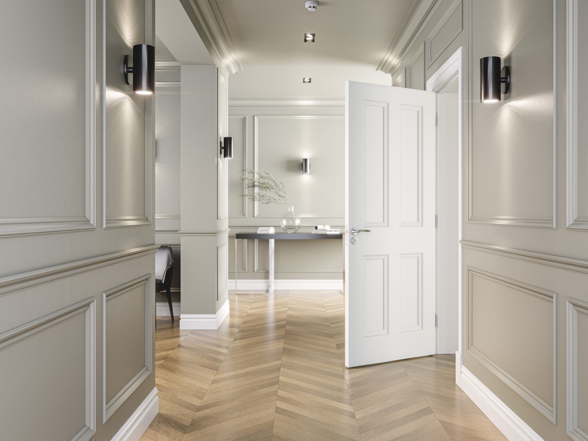 Revamp your room with our simple, elegant and affordable “Edwardian” wall panelling. Not only is “The Georgian” wall panelling inexpensive and can save you considerable time, it is also easy to install, complementing the Deanta range of quality doors, skirting, architrave and door hardware.